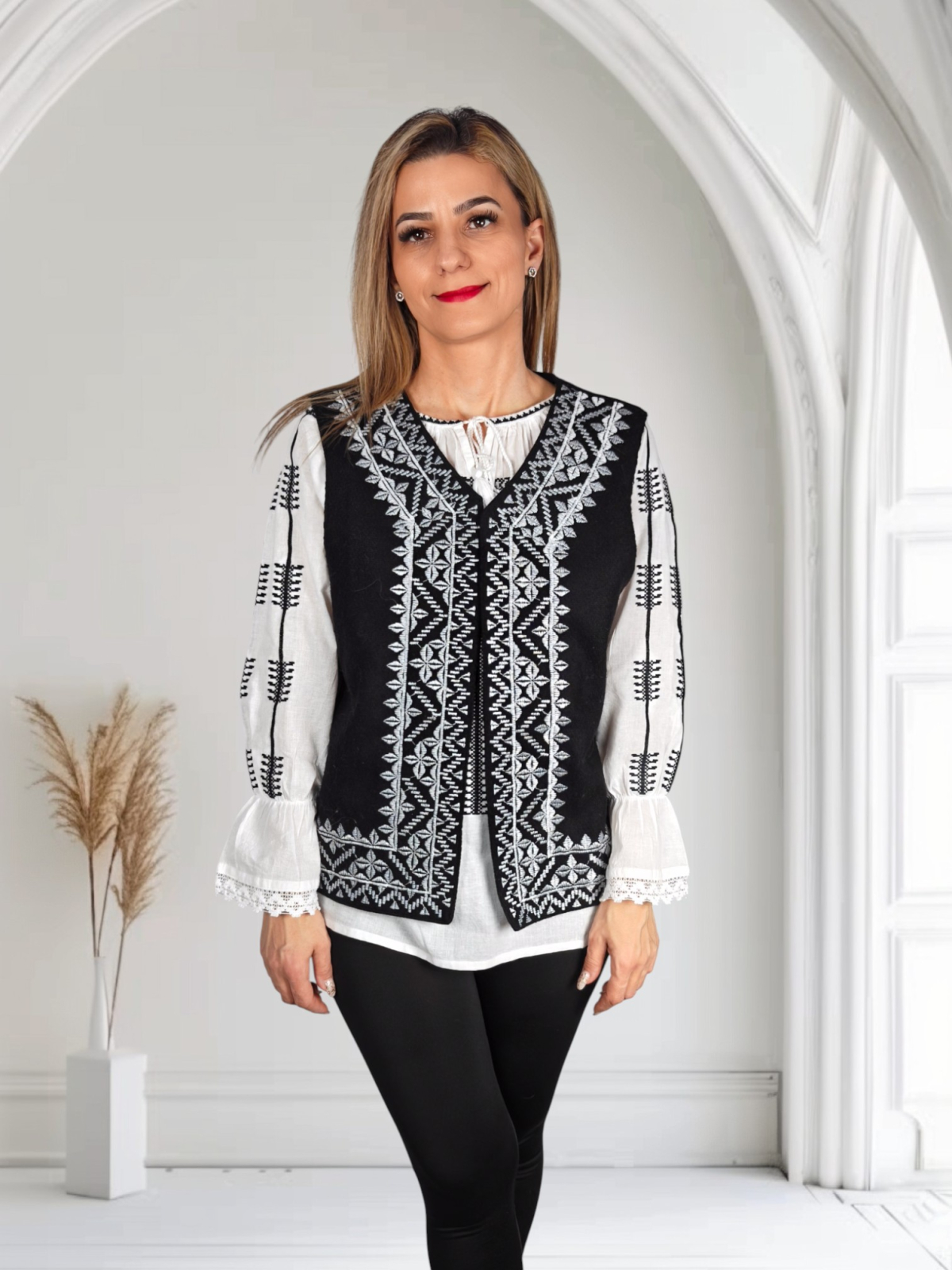 Modelul din imagine are 160cm, 57kg, 90cm in bust si poarta masura S.