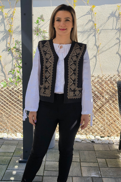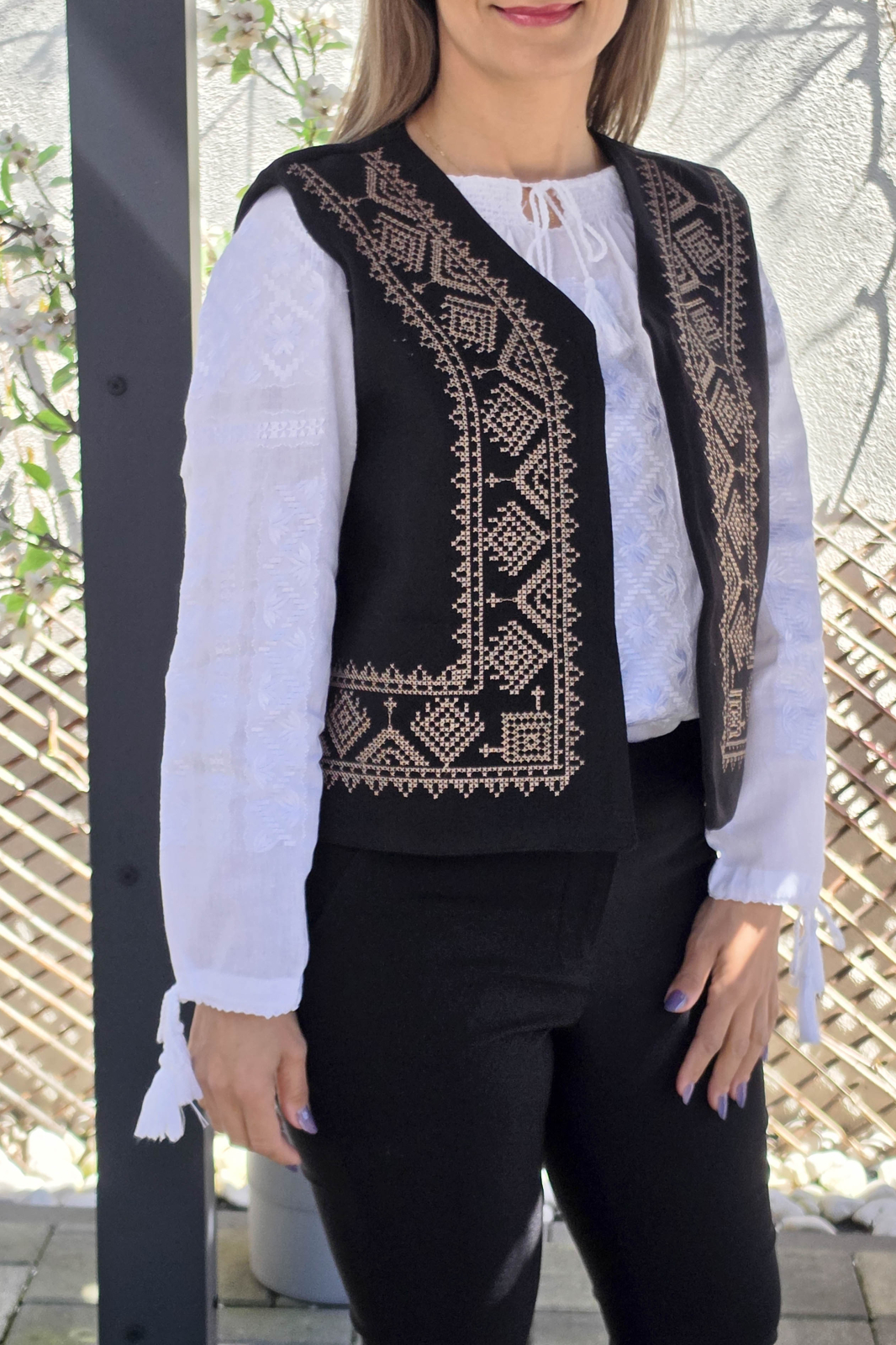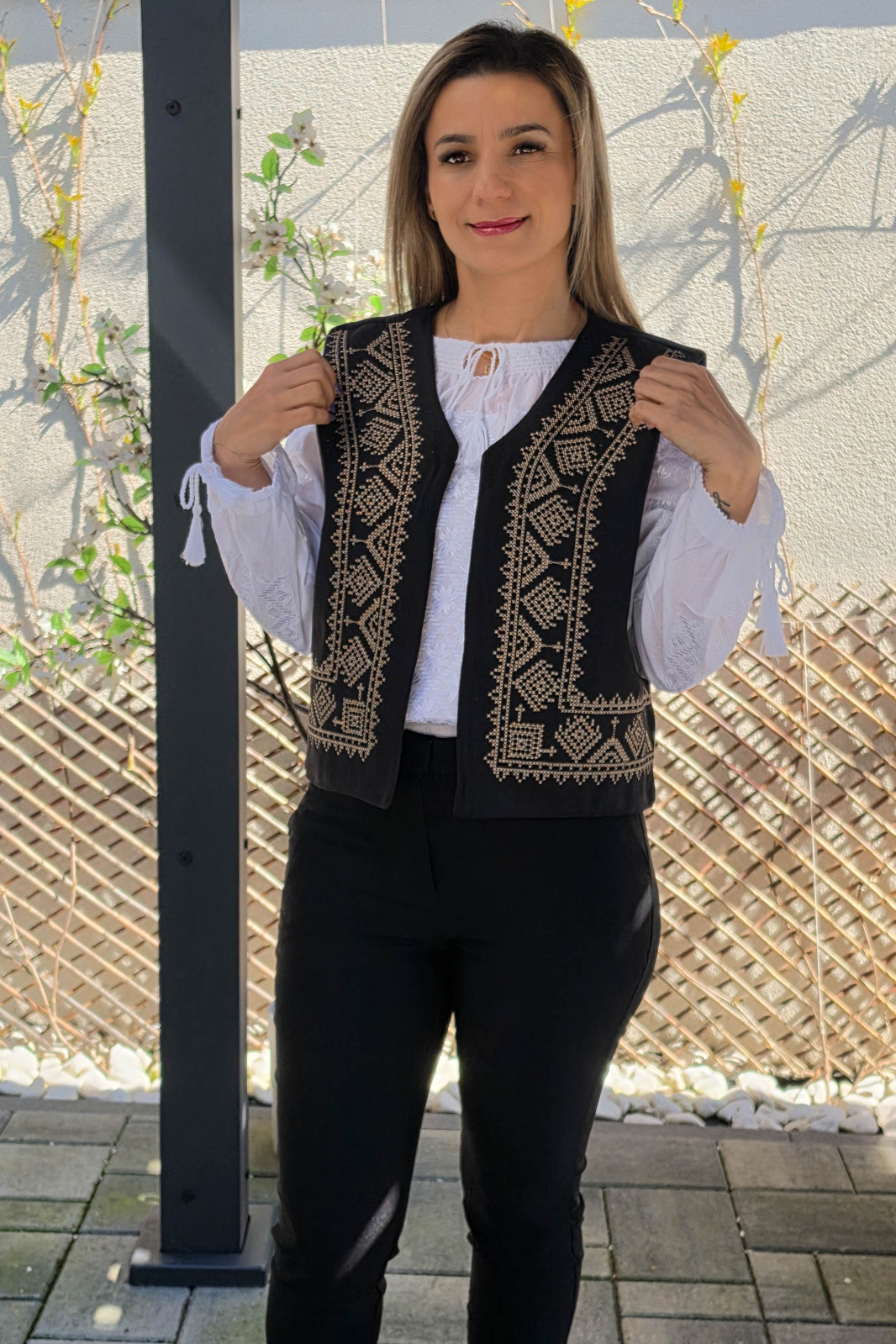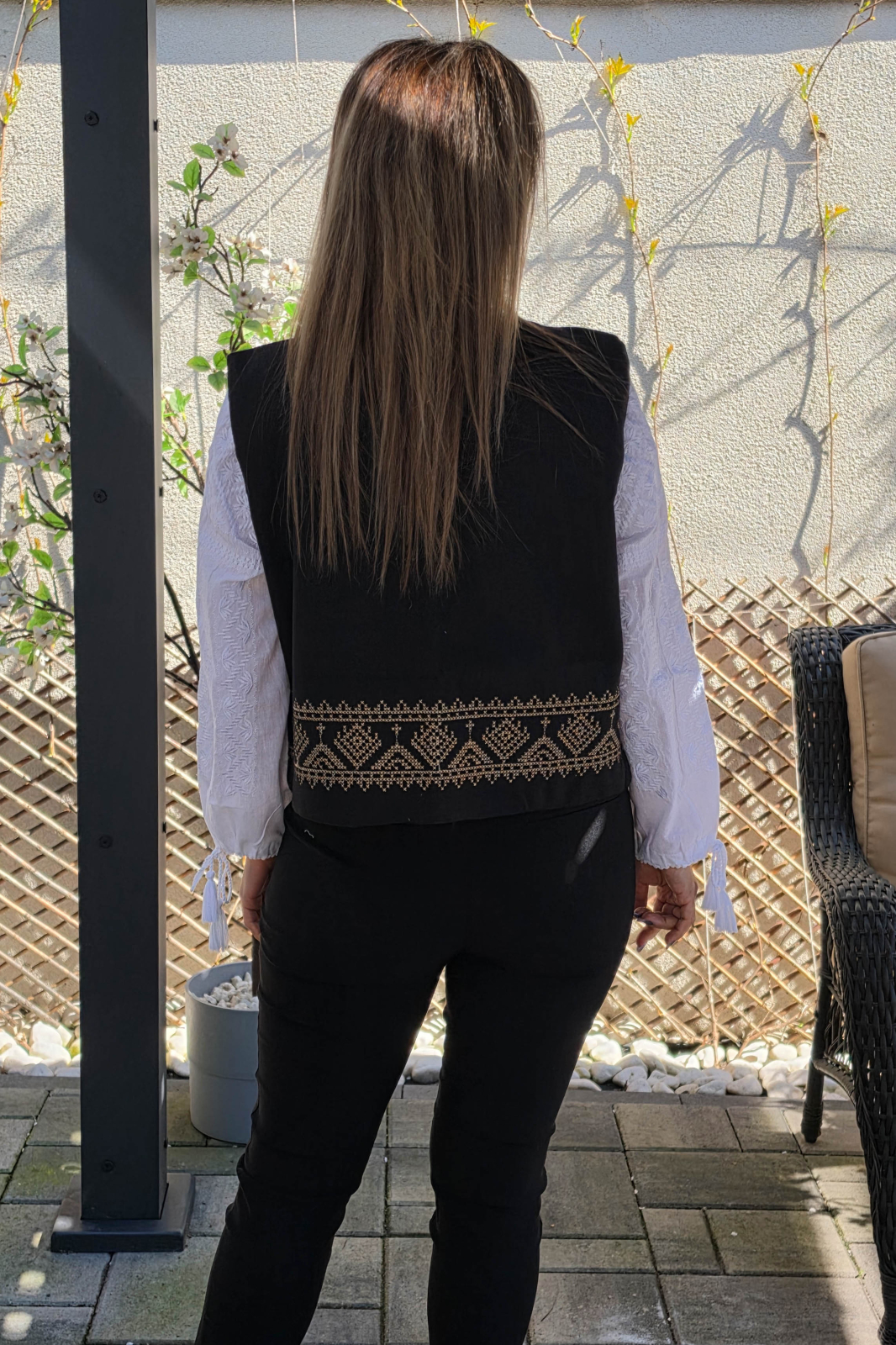 Vesta brodata cu model traditional din poliester/bumbac, captusita.