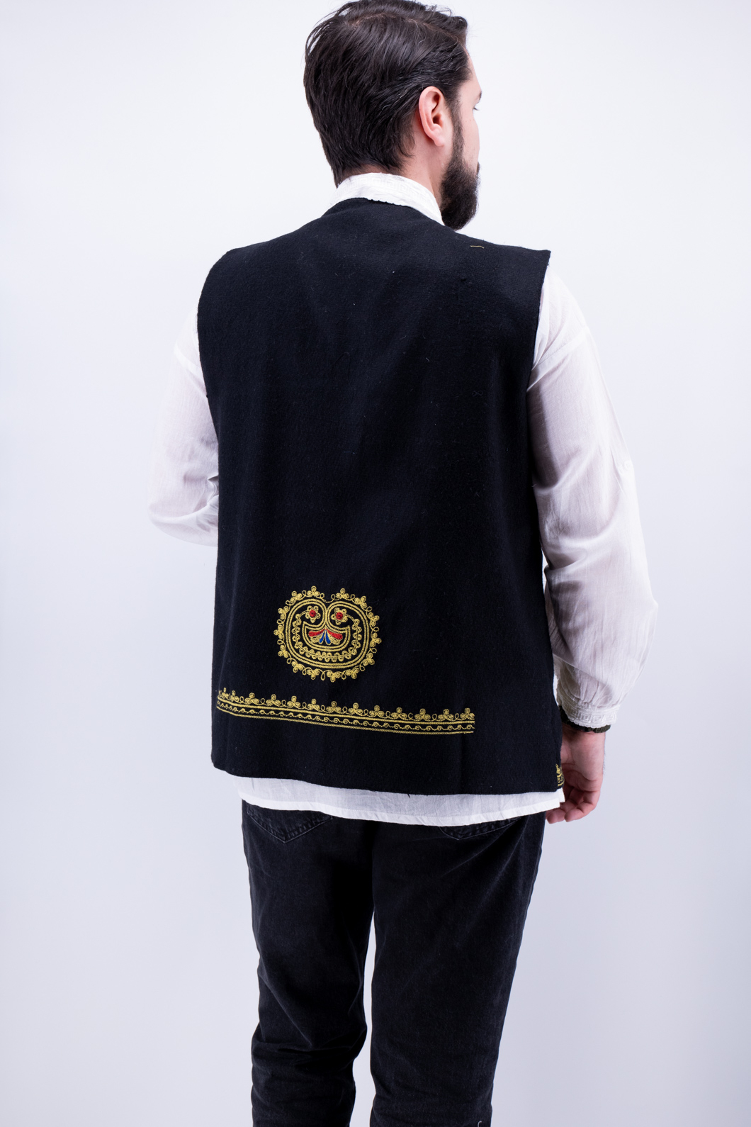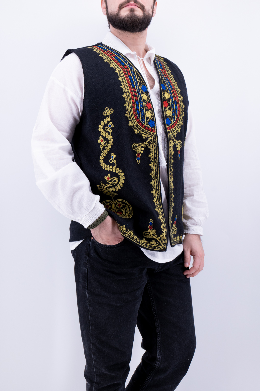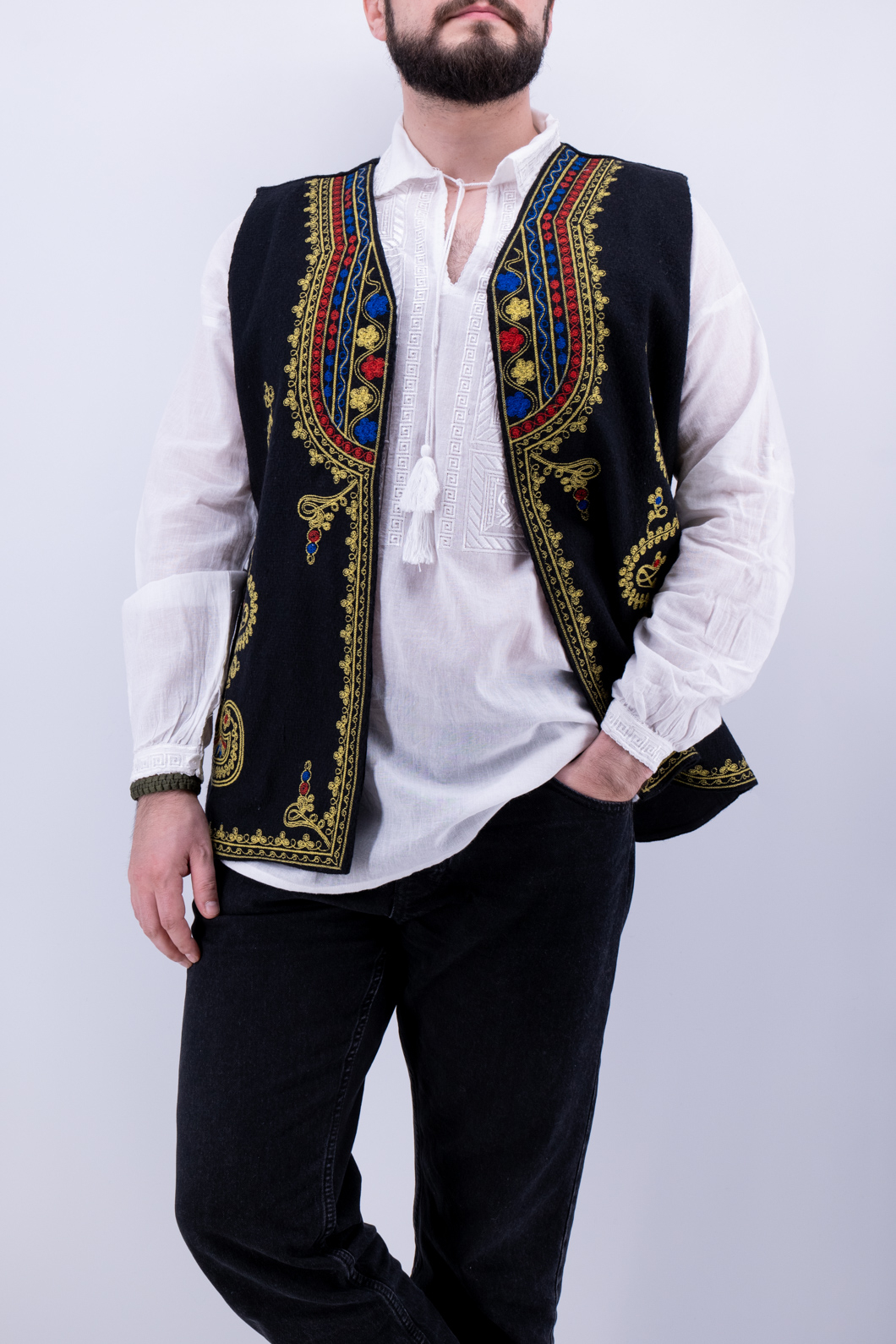 Culoare: negru cu broderie galben, rosu si albastru